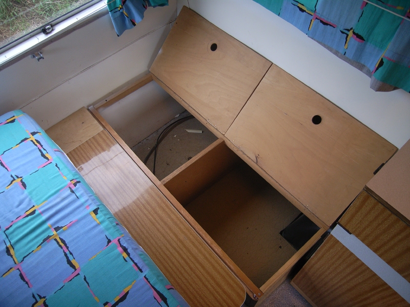 Aフレームに備わる収納ケースは前オーナーさんの手作りです。